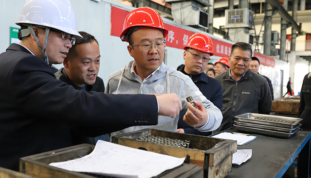 區(qū)委書記唐衛(wèi)湘一行走進公司生產(chǎn)車間,深入了解公司的生產(chǎn)流程、產(chǎn)品和應(yīng)用行業(yè),詳細詢問公司市場開拓、產(chǎn)品競爭力、研發(fā)規(guī)劃、人才引進計劃、公司發(fā)展前景和上市規(guī)劃。唐衛(wèi)湘書記對公司的產(chǎn)品和技術(shù)表示了高度贊賞,勉勵公司要以“闖”的精神、“創(chuàng)”的勁頭、“干”的作風(fēng),堅定走專精特新“小巨人”高質(zhì)量發(fā)展之路,為株洲重振老工業(yè)城市雄風(fēng)發(fā)揮積極作用。