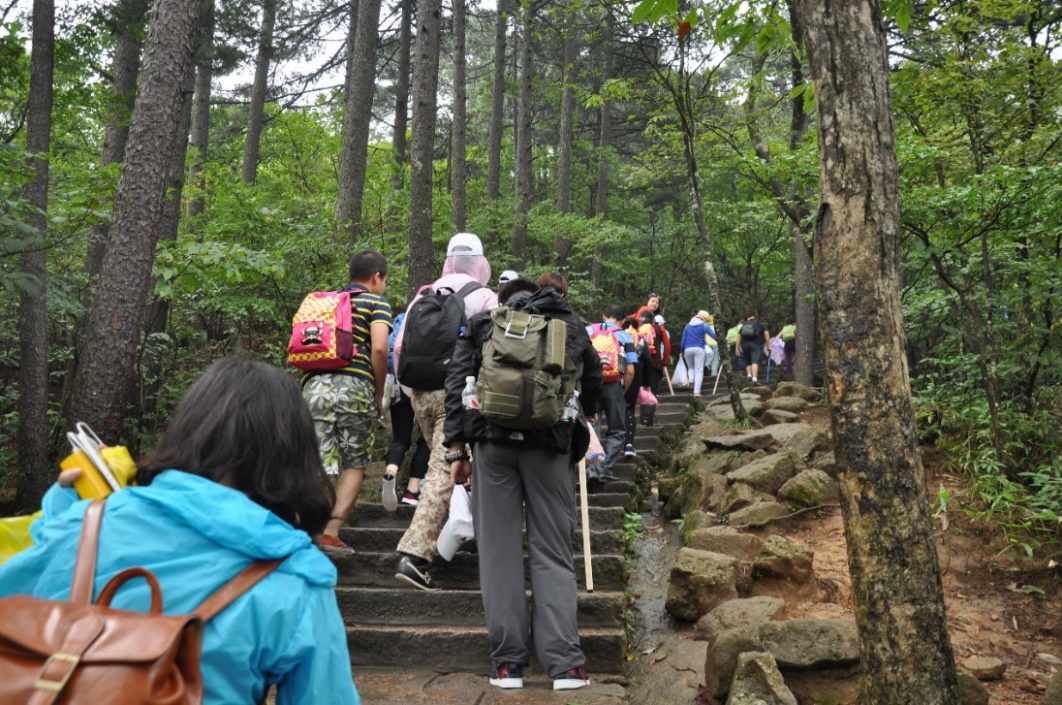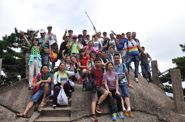 這天的天氣是再適合爬山不過了,大家早早準(zhǔn)備好了大背包小背包的食物和水,個(gè)個(gè)壯志雄心、意氣風(fēng)發(fā)、精神抖擻,朝著黃山之巔奮力前進(jìn)。攀登開始了,因?yàn)殚_始的激情一下就走到了半山腰,但大約1小時(shí)后便開始有同事邁不動(dòng)腳步了,肩上背的背包原來這么重,都不知道自己帶了些什么,恨不得現(xiàn)在一口氣把背包里所有食物都吃進(jìn)肚子里來減輕肩上重任。體力好的同事主動(dòng)幫助身體瘦弱的女同事提拿包裹行李,互相鼓勵(lì),互相攙扶,靠團(tuán)結(jié)的力量一步步前行。
